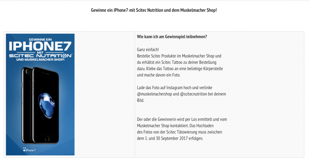 Der deutsche Supplement Online Händler MUSKELMACHER Shop verlost in Kooperation mit SCITEC Nutrition bis Ende des Monats ein iPhone 7. Alle Details zum Gewinnspiel haben wir im Folgenden für euch zusammengefasst:
