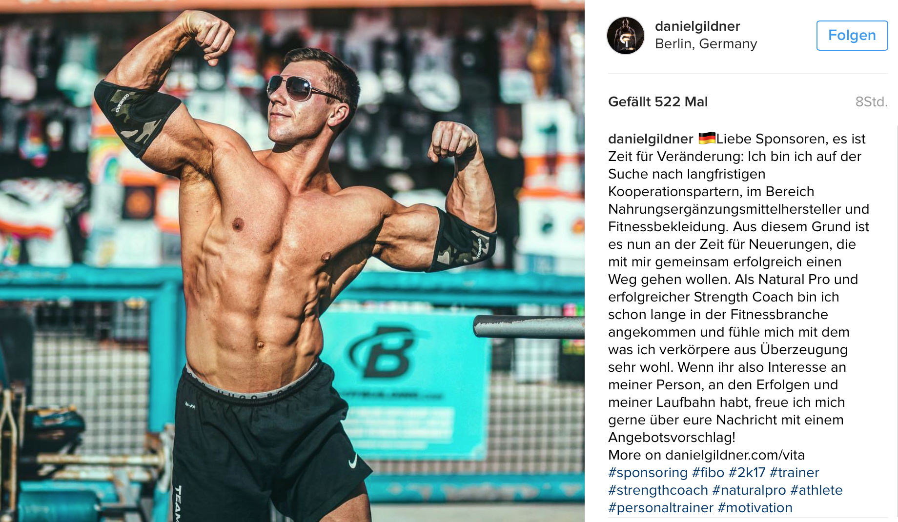 Demnach ist der 27 jährige wohl auf der Suche nach neuen Kooperationspartnern in der Fitnessbranche. Gildner kündigt in seinem Post an, dass er auf der Suche nach Veränderungen und Neuerungen sei. Dementsprechend wolle er wohl auch mit neuen Firmen und Marken zusammenarbeiten.