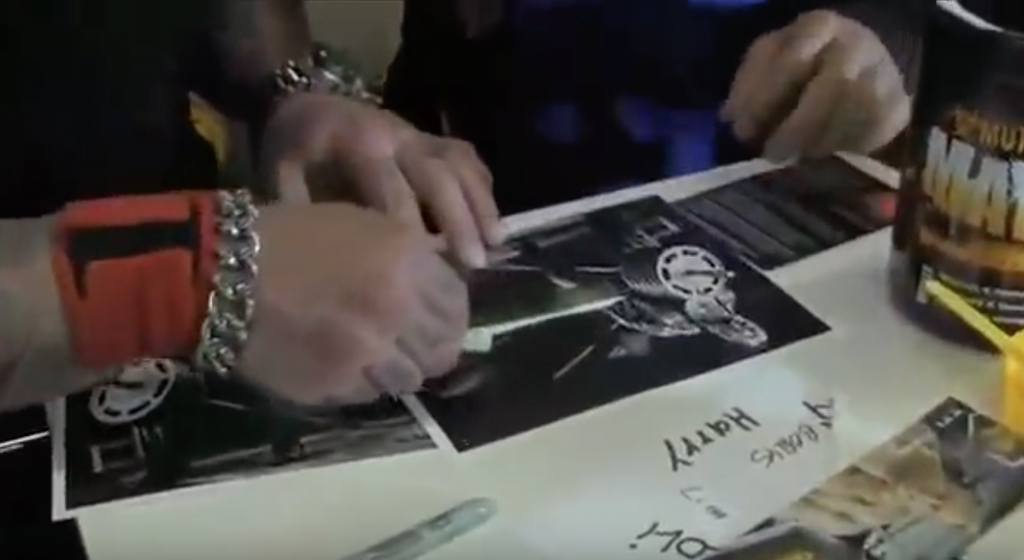 Dass diese Aufnahmen in der Tat existieren, zeigen nun diverse Clips auf YouTube. Darin zu sehen: ein sichtlich gut gelaunter Rich Piana im Interview mit Dave Palumbo von Rx Muscle auf der FIBO 2013. Während des Dialogs kommen die Beiden auf Richs Lieblingsprodukte seines damaligen Sponsors „Mutant“ zu sprechen. Neben dem Massgainer zählt der damalige Mutant-Athlet auch deren Pre-Workout „Mayhem“ zu seinen Favoriten. Auf die Frage Palumbos, wieviele Scoops er davon nehmen würde, entgegnet Piana mit „einen einzigen, allerdings ohne Shaker“. Als der Moderator ihn daraufhin fragt, wie er diesen denn konsumieren würde, zeigt Piana mit einem zum Strohhalm geformten Geldschein auf eine bereits vorbereitete weiße „Linie“ und meint nur, dass er diese schnupfen würde. Was in den darauffolgenden Sekunden folgt, sind ein paar tiefe Atemzüge durch die Nase mithilfe des „Strohhalms“.