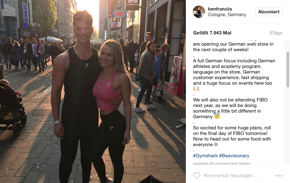 Kurz nach der FIBO gibt es jetzt weitere spannende Neuigkeiten von dem britischen Unternehmen. Fans werden diese Woche sicherlich festgestellt haben, dass es sowohl auf Facebook, als auch auf der Website nun komplett deutsche Plattformen gibt. Diese Veränderung hat Gymshark dann auch auf der offiziellen Instagram Seite verkündet. Das Ganze gehört wohl mit zur Firmenphilosophie. Schließlich sei das Gymshark Team immer auf der Suche nach neuen Wegen um sich weiterzuentwickeln. Dabei soll vor allem der Kunde im Fokus stehen. Die Gründer wollen stets ermöglichen, was sich die Fans wünschen. Demnach wird in Zukunft wohl der Fokus vermehrt auf Deutschland gerichtet werden.