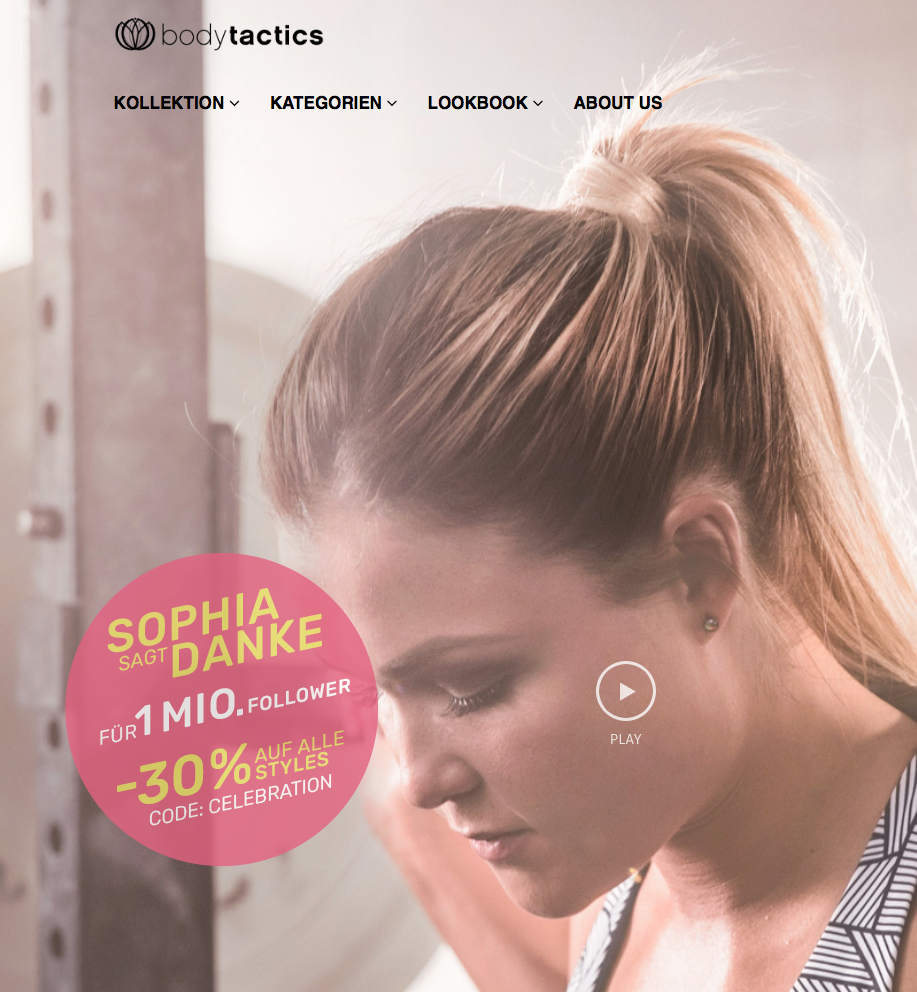 Vor allem die Mädels lieben Sophia. Mittlerweile ist sie zu einem echten Vorbild für Viele geworden. Dementsprechend wächst auch die Fangemeinde der „sweating beauties“, wie sie Sophia nennt, stetig. So hat Thiel mittlerweile knapp 650 Tausend Abonnenten auf YouTube und fast 1,3 Millionen Gefällt mir Angaben auf Facebook. Zudem hat sie jetzt auch noch die 1 Million Follower auf ihrem Instagram Account geknackt! Zum Vergleich: die ProBros Mischa Janiec und Patrick Reiser haben gerade mal 150-175 Tausend Follower. Anja Zedier beispielsweise knapp 250 Tausend. Selbst Julian Zietlow hat die Million noch nicht geknackt. Sophia setzt sich damit deutlich von der Konkurrenz ab. Als kleines Dankeschön an ihre Fans hat sie deshalb einen Rabattcode für ihre Klamotten Kollekton eingerichtet. Aktuell gibt es bei Bodytactics 30 Prozent Rabatt auf die gesamte Linie.