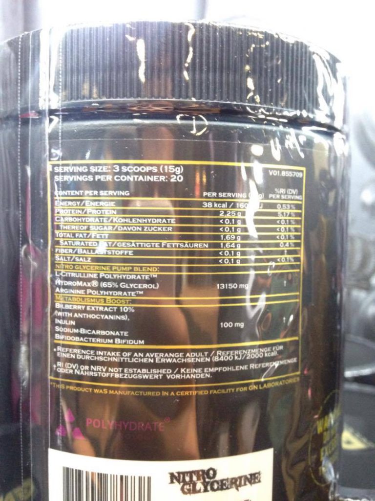 Im neuen Nitro Glycerine Pump Blend findet ihr sicherlich alt bekannte Zutaten wieder. So setzt sich die Formel aus den beliebten Stickstoffoxyd Boostern Arginin Polyhydrate™ und Citrulline Polyhydrate™ und dem Pump Inhaltsstoff Hydromax™ zusammen. Natürlich hat GN hierbei in bester „Ami-Manier“ die genaue Zusammensetzung verschleiert. Genaue Grammangaben findet ihr demnach nicht. Laut der Entwickler soll Nitro Glycerine aber für einen Pump sorgen, den es so noch bei keinem Produkt auf dem Markt gibt.