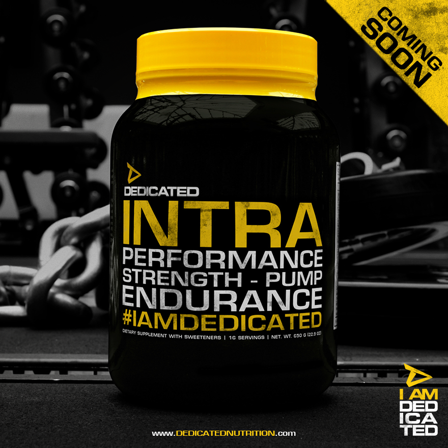Dieses Zitat hat schon erahnen lassen, dass es sich bei der Neuheit um ein spezielle Supplement handelt, das man im Training konsumieren soll. Allem Anschein nach wird die Neuheit außerdem eine spezielle Eiweißform beinhalten, die laut DEDICATED für eine optimale Regeneration sorgen soll. Mittlerweile hat der Hersteller auch schon ein erstes Teaserbild veröffentlicht. Demnachwird das neue DEDICATED „INTRA“ sowohl die Performance während dem Training, also auch den Pump, die Kraft und Ausdauer beeinflussen.