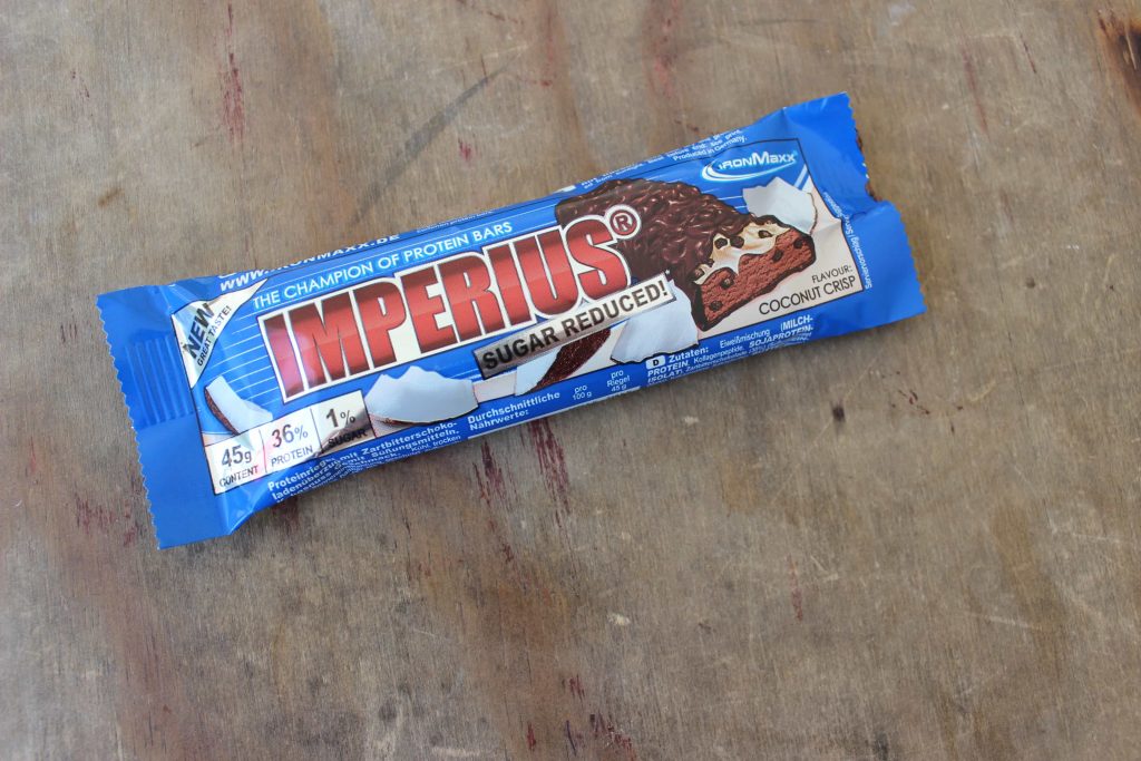 Neben Proteinpulvern gibt es auf dem Fitness- und Bodybuilding-Markt wohl kein anderes Supplement, welches in so derartig vielfacher Ausführung verfügbar ist, wie der Proteinriegel. Ein Leben ohne Proteinriegel wäre für die meisten Fitnesssportler heutzutage kaum noch „vorstellbar“. Kein Wunder also, dass es sie mittlerweile wie Sand am Meer gibt. Auch der deutsche Hersteller „IronMaxx“ erkannte relativ schnell diesen Trend und brachte schon vor über 12 Jahren die ersten Eiweißriegel auf den Markt. Im Laufe der Jahre unterzog das Unternehmen ihre Proteinriegel unzähligen Neuerungen und „Neuauflagen“. Dieser Entwicklungsprozess führte schließlich dazu, dass die Firma Mitte letzten Jahres für ihren Crunch-Proteinriegel „Imperius“ eine „Sugar Reduced“-Variante auf den Markt brachte. Nun hatten wir die Möglichkeit die zuckerreduzierte Version des „Imperius“ in der Geschmacksrichtung „Coconut Crisp“ für Euch zu testen. Ob es sich dabei wirklich um den – wie von IronMaxx beworben – „Champion of Protein Bars“ handelt, verraten wir euch in diesem Beitrag.