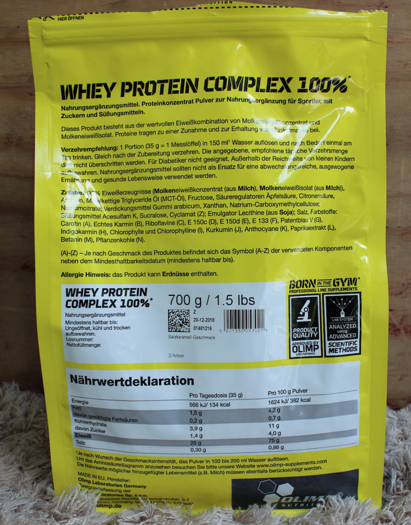 Die Marke OLIMP gehört in der Supplement Industrie, vor allem im europäischen Bereich, definitiv zu den etablierteren Firmen. Dementsprechend breit gefächert ist auch das Sortiment des Herstellers. So gibt es neben den Standart Produkten wie Whey Protein, BCAAs und Creatin, auch eine große Auswahl an fitnessgerechten Mahlzeitenersatz-Produkten. Dabei ist es OLIMP nach eigenen Aussagen besonders wichtig, bei allen Supplements eine „garantiert hochwertige und einwandfreie Qualität zu verwenden“. Zudem scheint der Genussfaktor ebenfalls nicht zu kurz zu kommen. Schließlich hat OLIMP auch immer eine gute Auswahl an verschiedenen Geschmacksrichtungen bei allen Produkten. Erst kürzlich veröffentlichte die Marke zwei weitere Flavour für ihr Whey Protein Complex. Die Sorten „Salzkaramell“ und „Erdnussbutter“ werden wir in diesem Beitrag für euch testen.