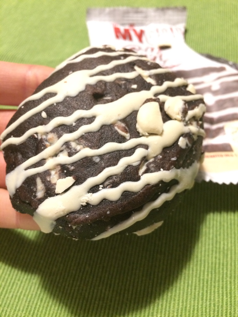 Wenn man den dunklen Schoko-Teig des „White Chip Chocolate“-Cookie betrachtet, fallen einem als erstes die weißen „Frosting“-Verschnörkelungen auf. Zuerst könnte man meinen, dass das Frosting für den Geschmack verantwortlich ist – weit gefehlt. Im Cookie selbst befinden sich zusätzlich große Stückchen aus weißer Schokolade, die für den wahren Geschmack sorgen. Wenn man dann in den „Keks“ und das Frosting beißt, kommt es zu einer wahren Geschmacksexplosion gepaart mit süßen „Überraschungen“.